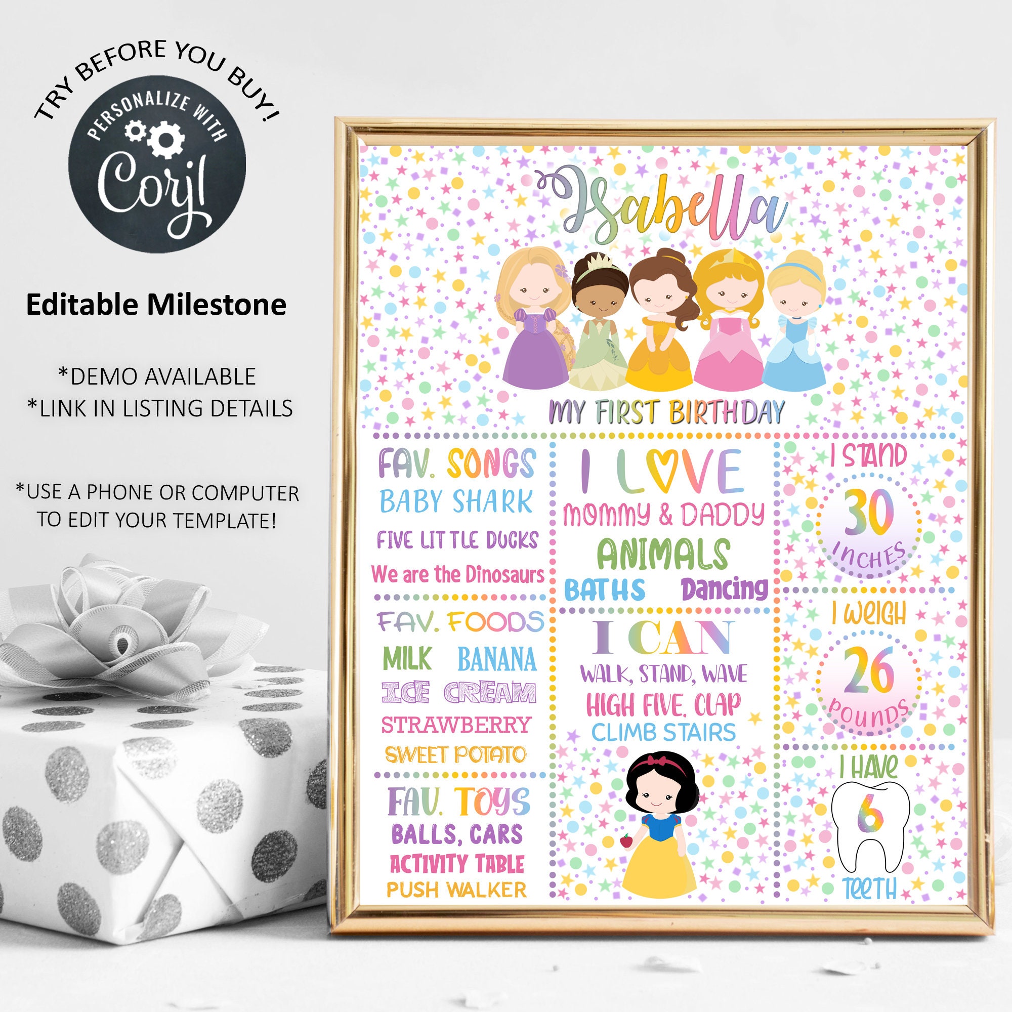 Editable Princess Birthday Milestone Poster Princess Etsy